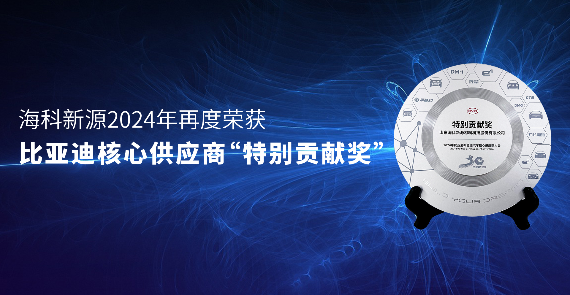海科新源連續(xù)四年獲獎,是比亞迪對海科新源的高度認可,也突顯了我公司在電解液溶劑領(lǐng)域走出了自己的優(yōu)勢之路。